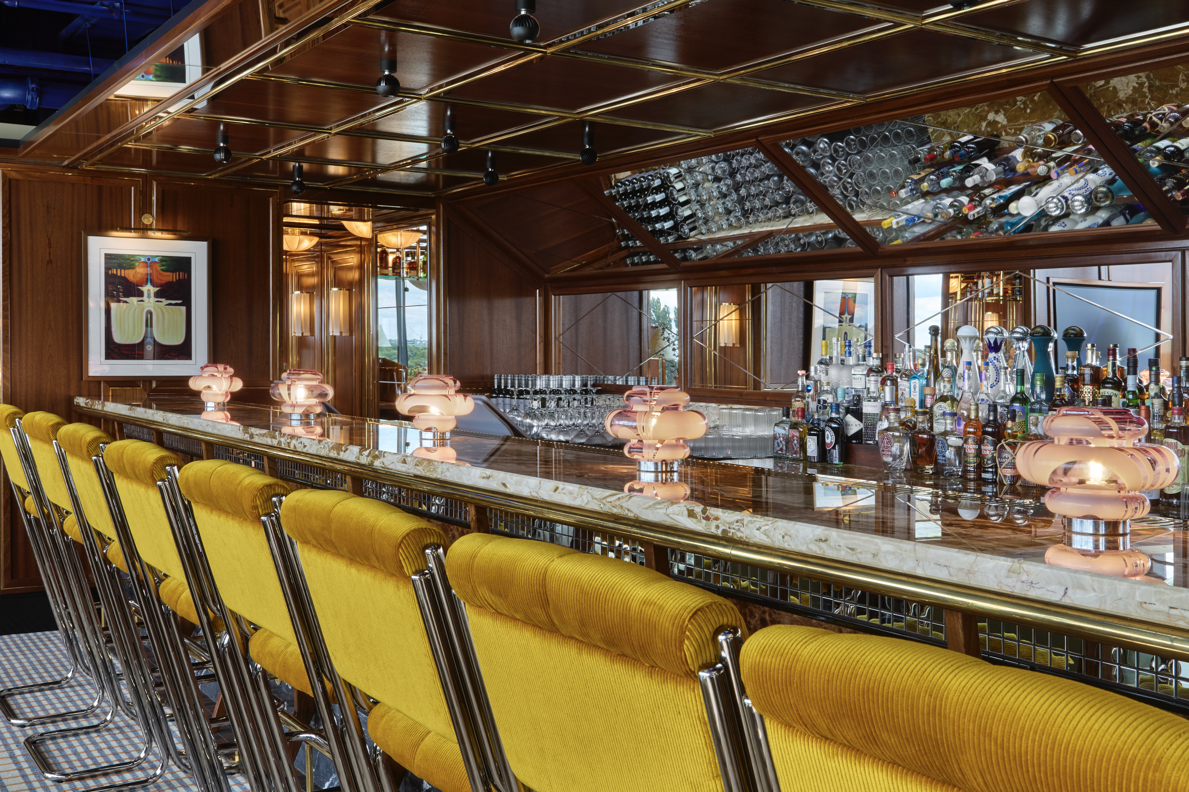 Step into a world of mystery and allure, where reflective surfaces and soft amber lighting create an intimate, luxurious atmosphere. Velvet touches and plush carpets enhance the sultry, moody vibe.
